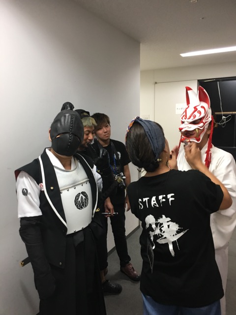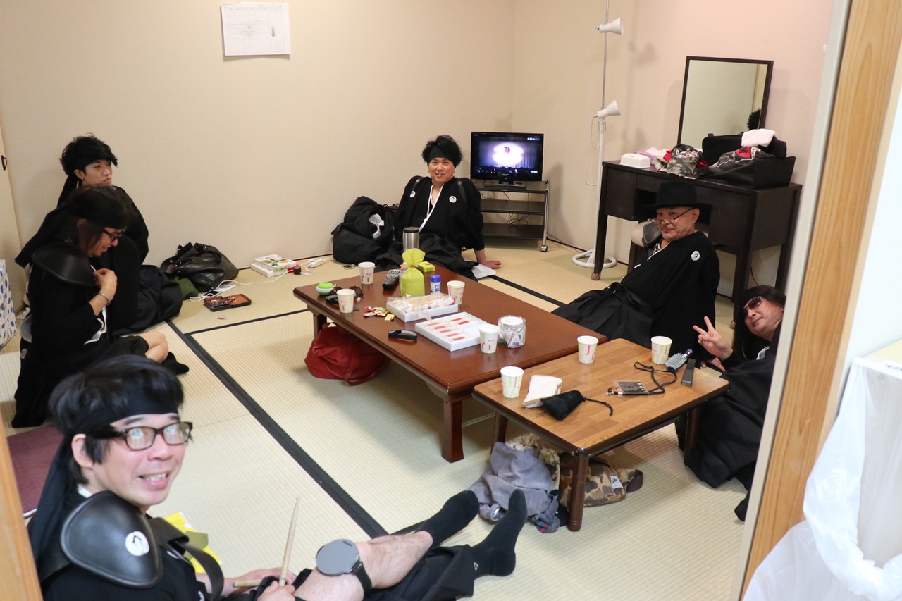 岡山の2日目本番前の楽屋にて、