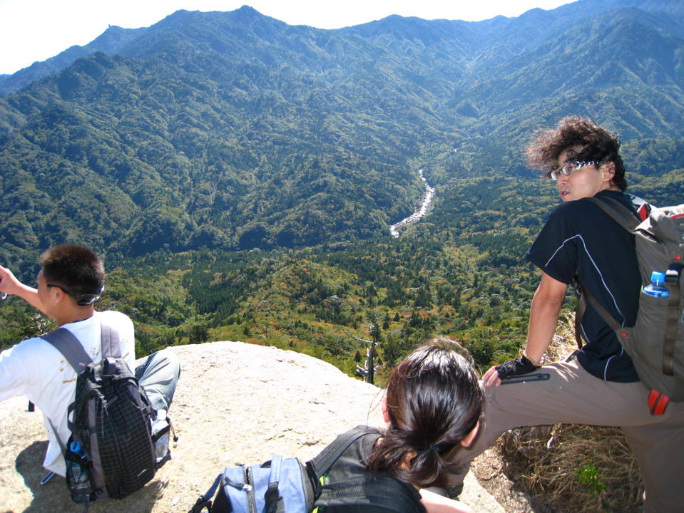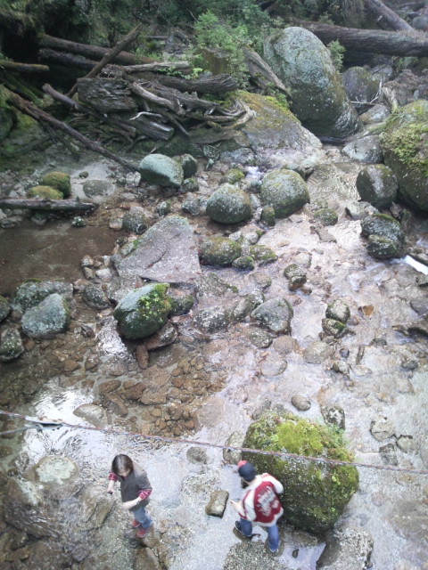 ヤクスギランドの吊り橋から見たおじさん