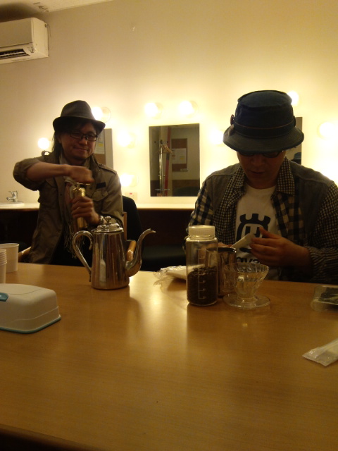 楽屋で?