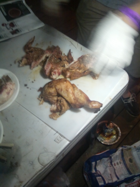 鶏のお尻に缶ビールを突っ込んで焼いて・・・