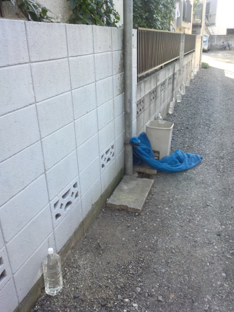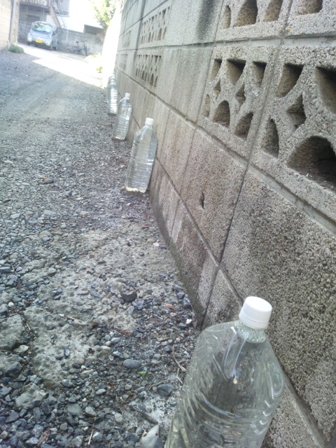 猫よけの水入りペットボトル