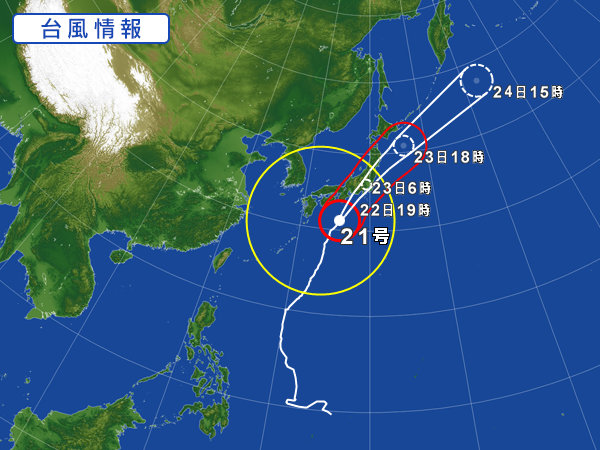 超大型の台風21号は強い勢力を保ったまま