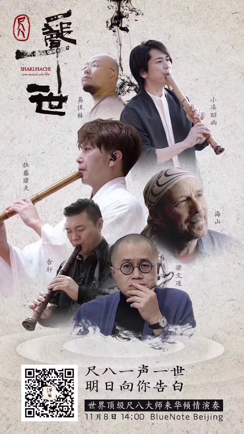 师从日本尺八大师神崎宪的中国90后尺八人含轩,在老师去世后,听从老师的教诲,到日本拜访了六位尺八大师。受到含轩的触动,日本尺八界的代表小凑昭尚来到尺八发源地中国杭州护国仁王禅寺以及中国长城为尺八溯源寻根。
