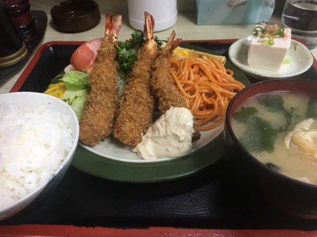 初めてエビフライ定食を頼みました。