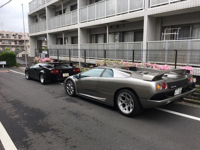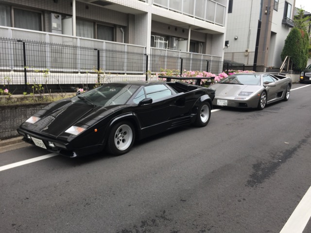 すると道端に新旧のランボルギーニが2台。