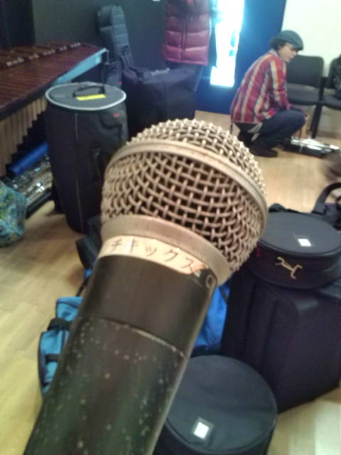 私のところから持ち込んだマイクには”テプラ”が。